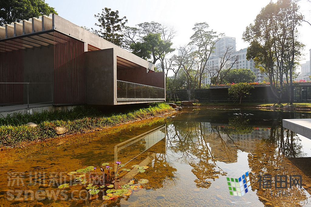 中式禮堂與蓮花魚(yú)池自然地鑲嵌在一起。