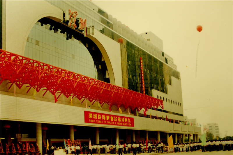 1990年6月,深圳市政府和廣鐵集團共同對深圳車站進行大規(guī)模改建,深圳新客站破土動工。1991年10月12日,深圳火車站新客站建成投入使用,時任國務(wù)院副總理田紀云出席典禮并剪彩,鄧小平為車站落成題寫了站名,特意少寫了一個“站”字。不僅將激勵留給深圳站,也留給深圳,對深圳敢想、敢闖、敢干的超常規(guī)發(fā)展寄于了殷切期望。