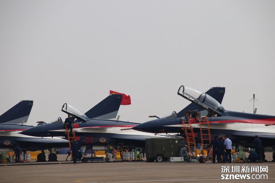 完成飛行表演,在停機(jī)坪上的殲-10。