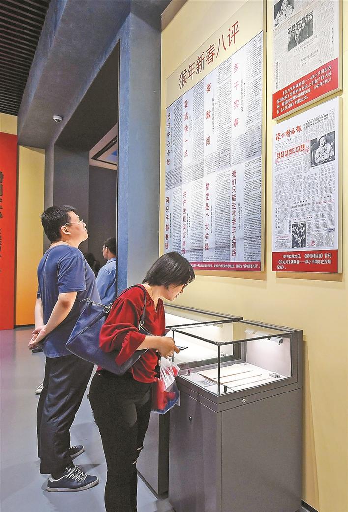 市民駐足觀看《深圳特區(qū)報(bào)》當(dāng)年刊登的“猴年新春八評(píng)”。