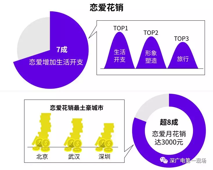 調(diào)查顯示,71.65%的單身男女表示戀愛將會增加生活開支,開支增加的最主要方面為生活開支、形象塑造和旅行。