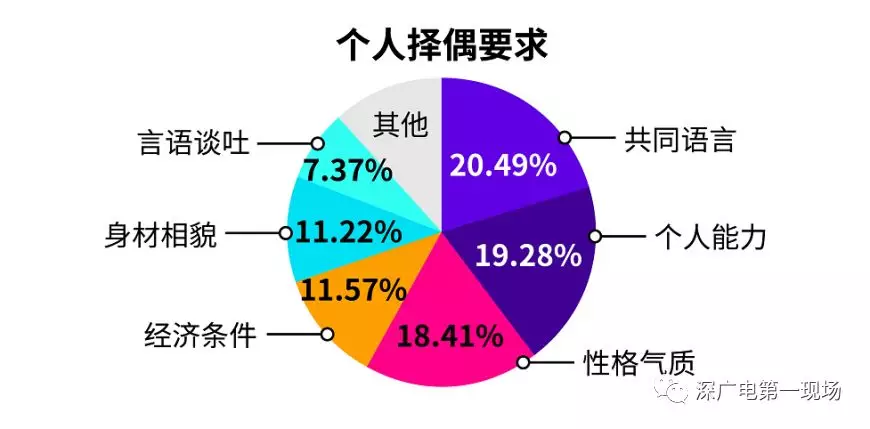 另外,調(diào)查顯示,共同語言、個人能力、性格氣質(zhì),為單身男女在擇偶時最看重的三個方面,其次為經(jīng)濟條件、身材相貌、言語談吐。