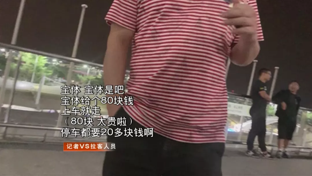 記者隨后用網(wǎng)約車軟件查詢之后發(fā)現(xiàn),夜間從機場打車至寶安體育場,價格大概在50元左右,而對方直接喊價80。隨后記者進入到網(wǎng)約車的等候區(qū),同樣有人主動過來詢問記者是否需要打車,但是這個人明確表示自己就是網(wǎng)約車司機,可以通過平臺下單,但是費用卻需要單獨支付。