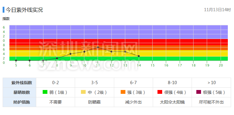 市氣象局發(fā)布今日紫外線實況(數(shù)據(jù)更新于11月13日14時)