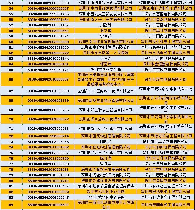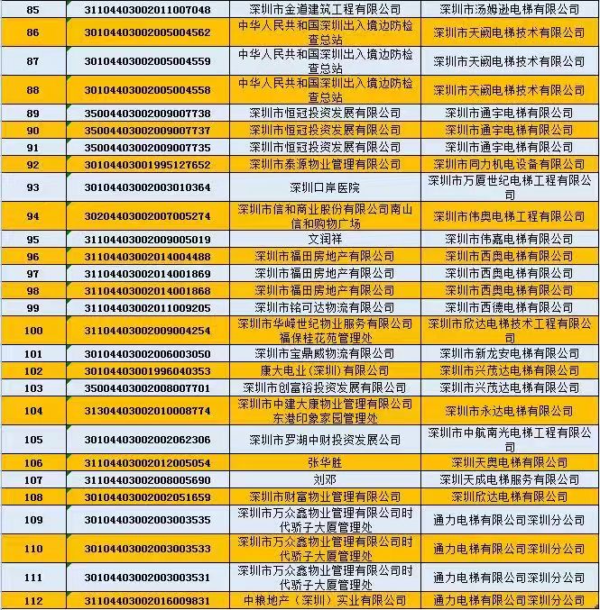 不合格電梯維保單位為:深圳市誠禾機電設(shè)備有限公司;深圳市通宇電梯有限公司;深圳市安眾電梯工程有限公司;深圳市蓉奧電梯有限公司;清遠市中日富士電梯有限公司;富士通(深圳)有限公司。