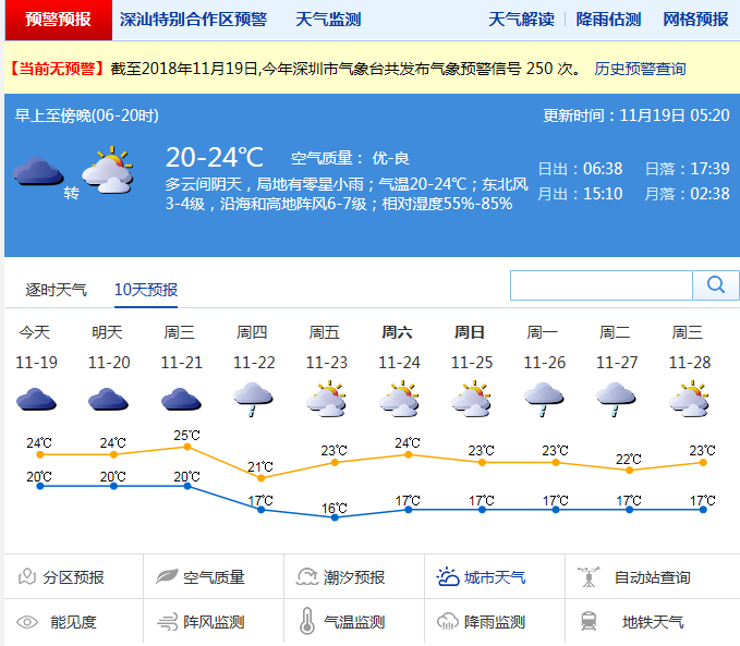 記者從深圳市氣象局了解到,18日西路冷空氣+切變線從粵北緩慢南壓下來,短暫時間可見陽光,沿海氣溫較高,在28°C-30°C左右,今天傍晚開始隨著冷空氣離深圳市越來越近,云層加厚,轉陰天有小雨,氣溫在20°C-25°C左右,體感稍涼。下一波冷空氣將于22日左右來,一次比一次涼,買的厚衣服可以拿出來美了!