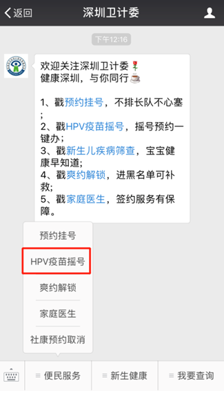 11月19日,深圳衛(wèi)計(jì)委上線了九價(jià)HPV疫苗搖號系統(tǒng),“深圳衛(wèi)計(jì)委”微信公眾號為官方認(rèn)證的唯一搖號平臺。進(jìn)入“深圳衛(wèi)計(jì)委”-菜單欄“便民服務(wù)”-“HPV疫苗搖號”系統(tǒng),可以一站式“注冊-搖號-預(yù)約”。