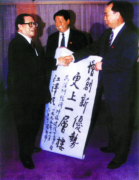 1995年12月,江澤民為深圳經(jīng)濟(jì)特區(qū)題詞:增創(chuàng)新優(yōu)勢(shì),更上一層樓。 陳富 攝
