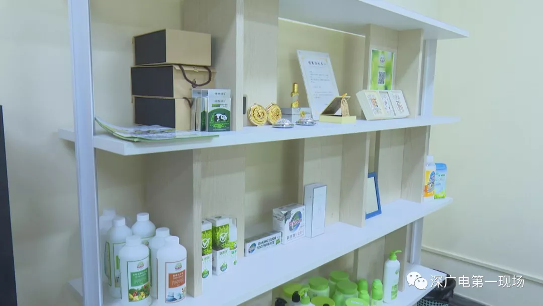 隨后執(zhí)法人員兵分多路,對這家福代代公司進(jìn)行檢查,其中一路執(zhí)法人員來到會議室,發(fā)現(xiàn)有不少的產(chǎn)品擺放在展示架上,其中有記者暗訪時看到的各種所謂的“能量”產(chǎn)品,還有一部分產(chǎn)品全部是一些洗滌用品,各式各樣,五花八門。執(zhí)法人員在檢查中發(fā)現(xiàn)展示架上的一些傳單,存在問題。