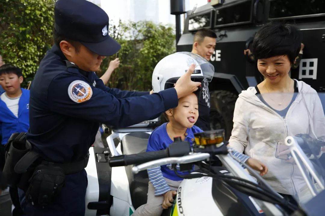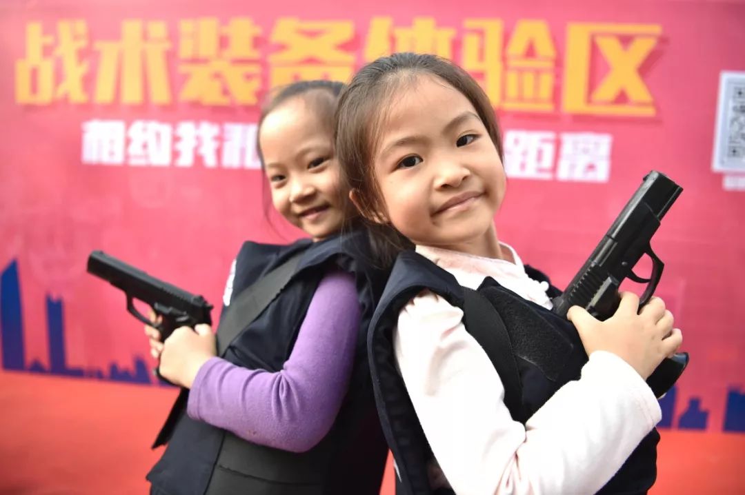 防暴盾牌、槍支警械威武霸氣,隊(duì)列棍術(shù)、擒拿格斗輪番上陣。很多人興致勃勃地穿戴警用裝備,頭戴鋼盔、身穿警服,登上反恐敞篷車拍照留念,圓夢(mèng)警察夢(mèng)想。