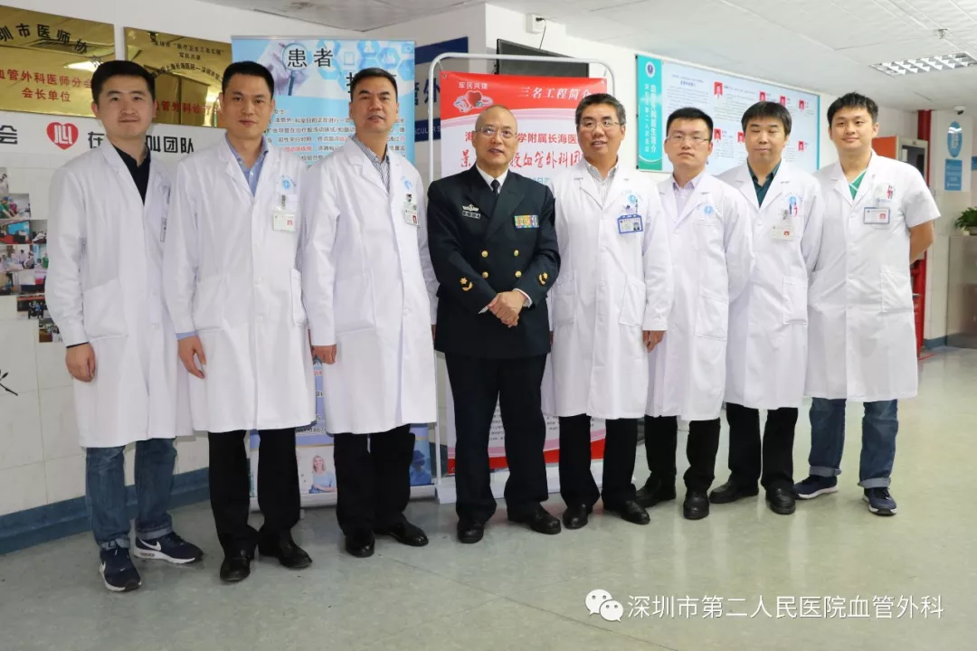 座談會結束后,景在平教授、趙永勝副院長與科室醫(yī)護人員一起,進行了床邊臨床教學查房,同時為一位腹主動脈瘤疾病患者會診。患者是抗美援朝老英雄(享受軍級待遇),因發(fā)現(xiàn)腹主動脈瘤(俗稱“不定時炸彈”)后,一直深受該疾病困擾,一度不愿意接受治療。經(jīng)過景在平教授詳細講解后豁然開朗,同意接受治療,并要求在景在平教授團隊及朱國獻主任團隊下進行手術治療。會診結束時,老先生緊緊握住景在平教授的手,萬分感激。