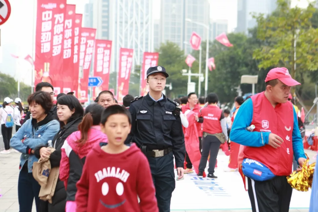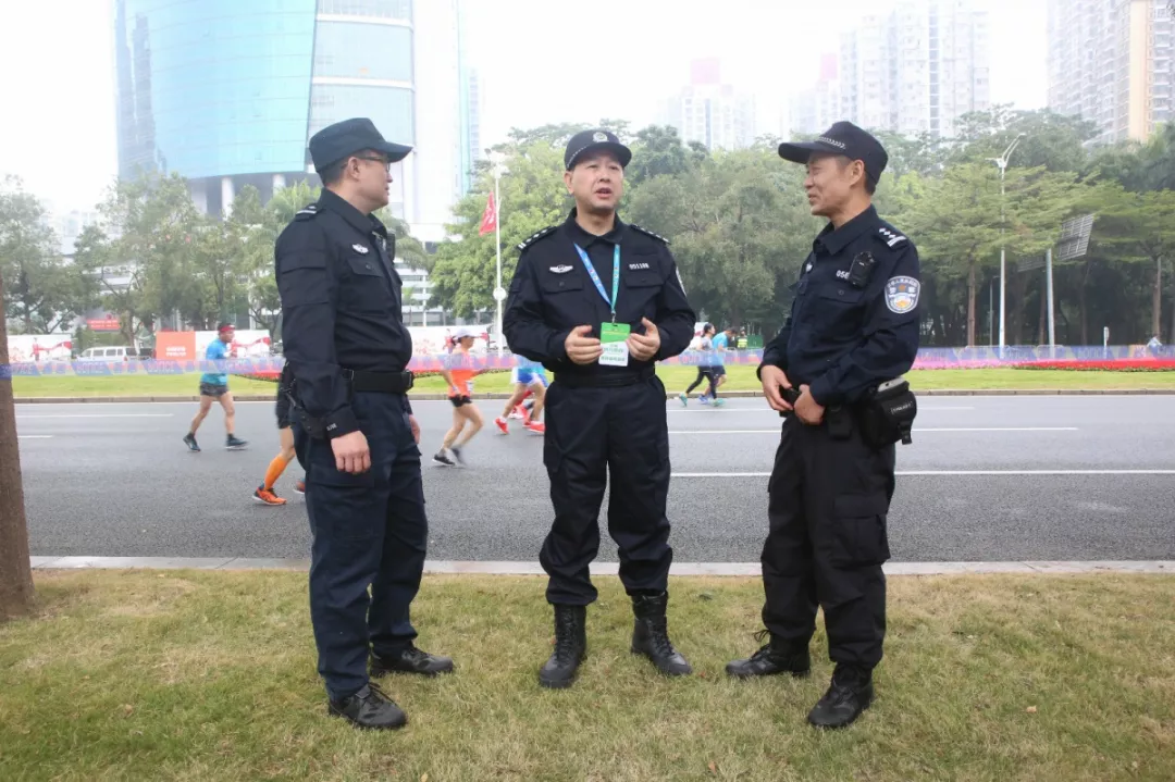 為全力做好此次馬拉松安保工作,福田警方提前謀劃、科學(xué)部署,承擔(dān)全程、半程馬拉松起點及6.2公里賽道的安全保衛(wèi),共出動警力1972人,啟用20套4G現(xiàn)場圖傳 “千里眼”,20套視頻識別探頭“守點”;警力實時定位系統(tǒng)、118個高低空視頻預(yù)案“守線”;71套現(xiàn)場視頻執(zhí)法記錄儀。從凌晨4點到下午2點,用長達(dá)10個小時的安?!榜R拉松”為賽事的順利開展保駕護航。