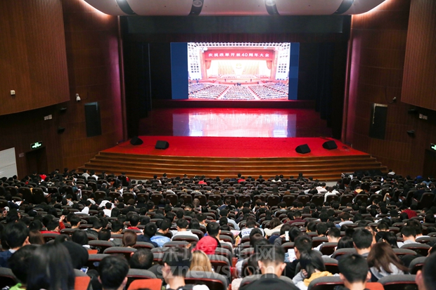 深圳大學(xué)組織近500名師生在國(guó)際會(huì)議廳收看了當(dāng)天的慶祝大會(huì)直播。深大經(jīng)濟(jì)學(xué)院黨委副書(shū)記張穎今年四十歲,是一位改革開(kāi)放的“同齡人”,她說(shuō)今天開(kāi)會(huì)回顧了自己生活和成長(zhǎng)的過(guò)程,“很感恩自己生活在這美好的時(shí)代,中國(guó)的發(fā)展和我的成長(zhǎng)是同步的,我在中國(guó)改革開(kāi)放前沿的窗口成長(zhǎng),感受到經(jīng)濟(jì)浪潮與蛻變,也在窗口中感受到包容與開(kāi)放,及務(wù)實(shí)的態(tài)度,解放思想、實(shí)事求是的精神讓我們看到之前的愿景與希望都得以在今天實(shí)現(xiàn)。作為享用改革開(kāi)放成果的人來(lái)說(shuō),我現(xiàn)在心情很激動(dòng),更多的是感恩?!彼硎荆鳛橐幻逃ぷ髡?,自己也有新時(shí)代的使命——為深圳的人才發(fā)展做貢獻(xiàn)。她說(shuō):“深圳的人才培養(yǎng)要與區(qū)域發(fā)展做匹配,未來(lái)我們要跟隨時(shí)代的步伐不停奮進(jìn)?!?/p>