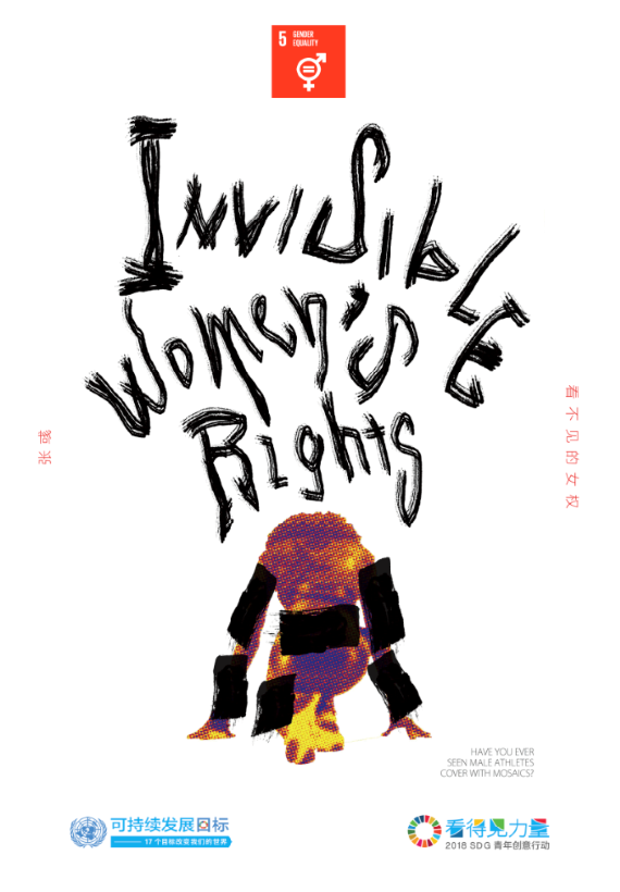作品解釋 /在一些國家的電視體育轉播中,女性的肢體是不能裸露于外界視線之中的。可笑的是,原本展現(xiàn)身姿動作的體育賽事,卻被黑色馬賽克所遮擋,顯得畫面十分尷尬。這就是女性在當下的權利阻礙,試問,男性在體育賽事中也有相同待遇嗎?