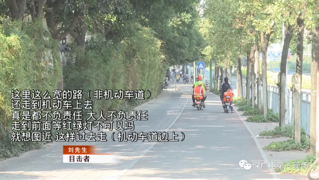 今天上午記者來到了事發(fā)現場,寶安大道和新安六路的交匯口。在現場,電動車違規(guī)現象嚴重:走機動車道、不戴頭盔、違規(guī)載人、不等紅燈的現象比比皆是,甚至出現了逆行的情況。雖然設置了非機動車道,但使用者寥寥無幾。