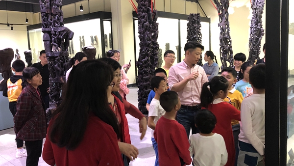 也許是被熱情的笑容和鼓舞所感染,天真活潑的小朋友們一到現(xiàn)場便與非洲大哥哥大姐姐們迅速的打成一片,毫無距離感。在非洲哥哥姐姐們的鼓聲引領(lǐng)下,同學(xué)們首先來到非洲文化博物館,由于大家都是第一次接觸非洲藝術(shù)品,哇哇哇的贊嘆聲此起彼伏,博物館工作人員瞬間被大家緊緊包圍,對各種藝術(shù)品提出了無數(shù)個(gè)五花八門的問題,真正成了“十萬個(gè)為什么”“案發(fā)現(xiàn)場”?!榜R賽人為什么住牛糞房子啊?”“木頭為什么是黑色的啊”“坐了酋長椅是不是就可以做酋長了?”……由于同學(xué)們第一次這么近距離接觸非洲文化,實(shí)在是太好奇太熱情,與各種藝術(shù)品親密接觸拍照、坐酋長椅體驗(yàn)“做酋長”的感覺、甚至工作人員也“網(wǎng)開一面”讓大家騎在大象和獅子木雕上盡情玩耍,導(dǎo)致原本計(jì)劃半小時(shí)的參觀時(shí)間足足一個(gè)半小時(shí)才結(jié)束。