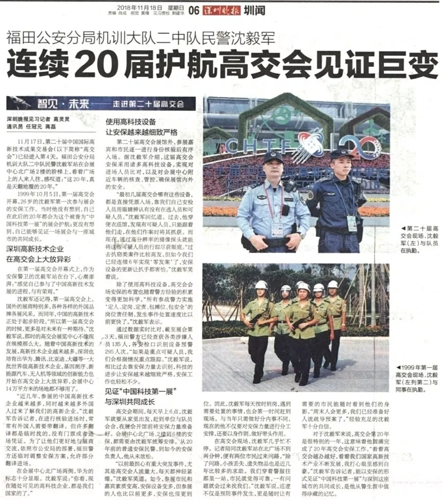 ★★11月18日,為期五天的第二十屆中國國際高新技術成果交易會在深圳會展中心圓滿落幕。福田公安分局在高交會警力部署、科技管控、防控打擊、安全宣傳、管理服務等方面一絲不茍,每日投入千名警力現場值守,實現了本屆高交會“零警情、零發(fā)案”,確保了各項展會活動安全、有序、順利舉行。