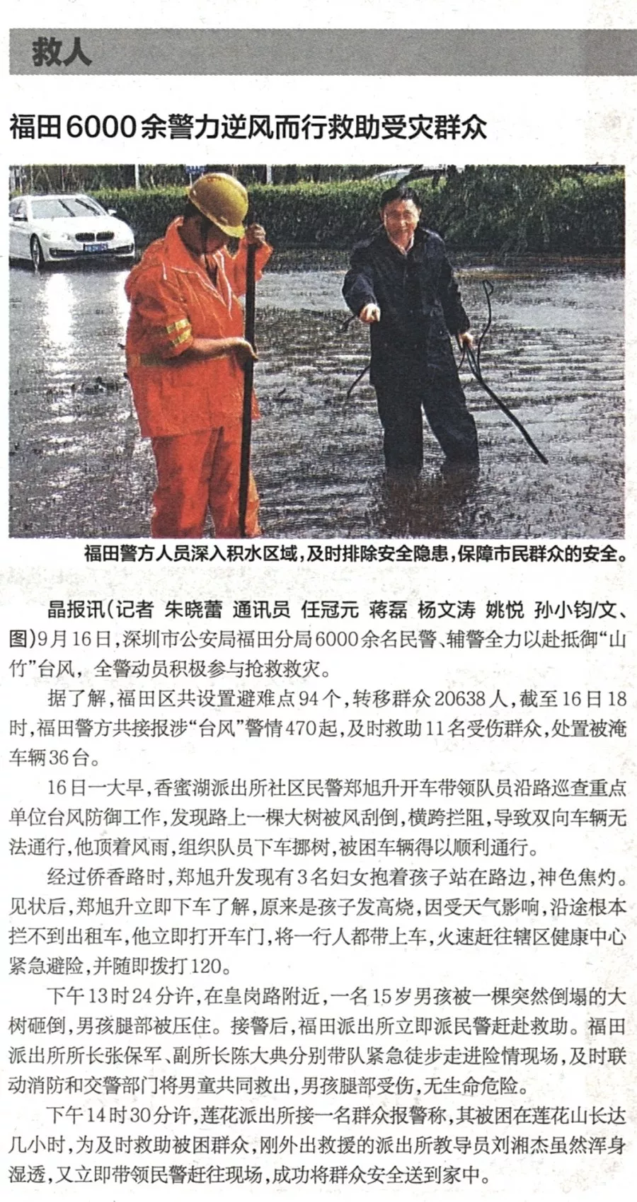 ★★福田警方啟動一級勤務,全力投入防御超強臺風“山竹”行動中。福田警方共接報涉“臺風”警情470起,及時救助11名受傷群眾,轉移群眾20638人,處置被淹車輛36臺,確保了轄區(qū)治安穩(wěn)定。