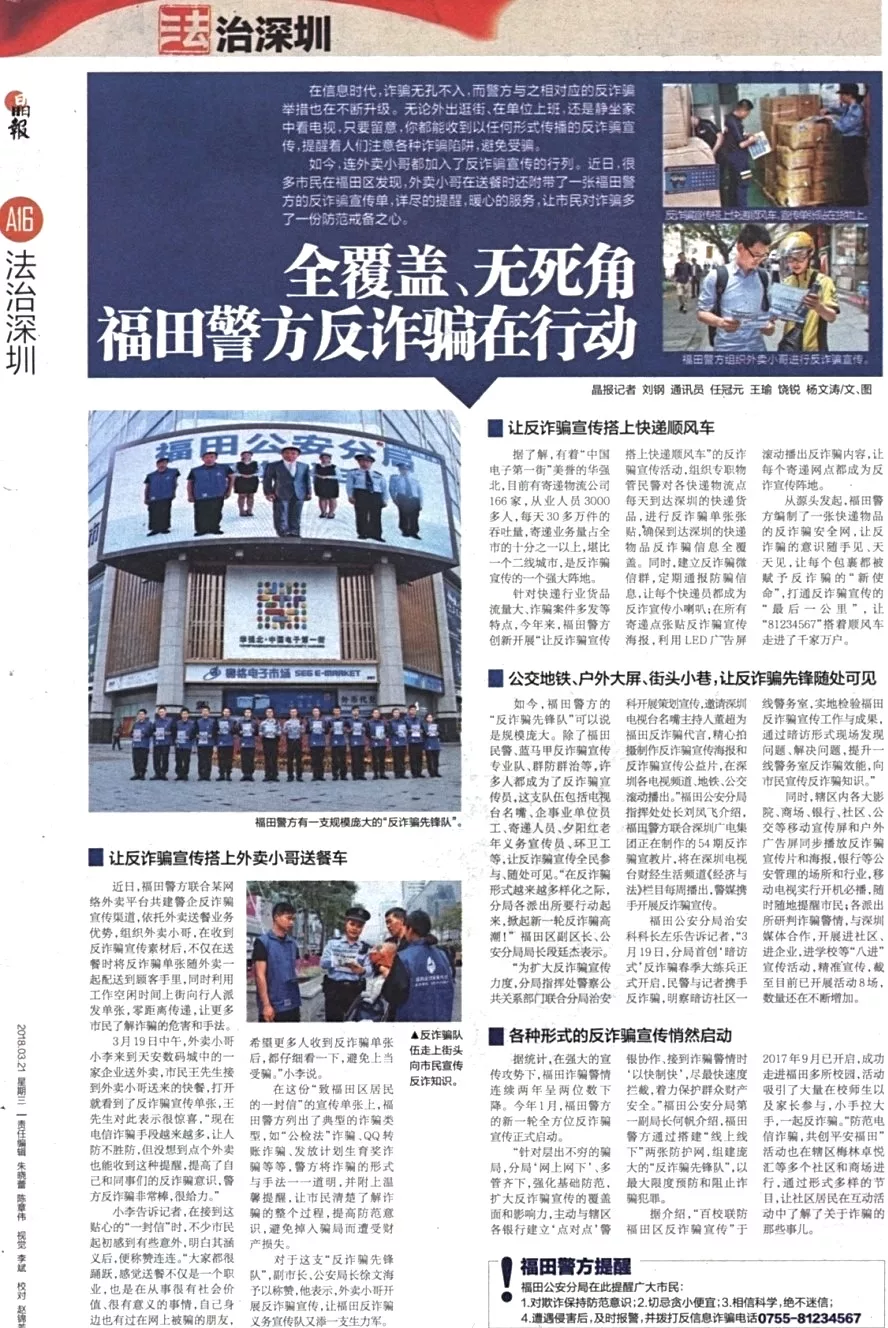 ★★福田警方通過搭建“線上線下”兩張防護網,組建龐大的“反詐騙先鋒隊”,多管齊下,擴大反詐騙宣傳的覆蓋面和影響力,最大限度預防和阻止詐騙犯罪。