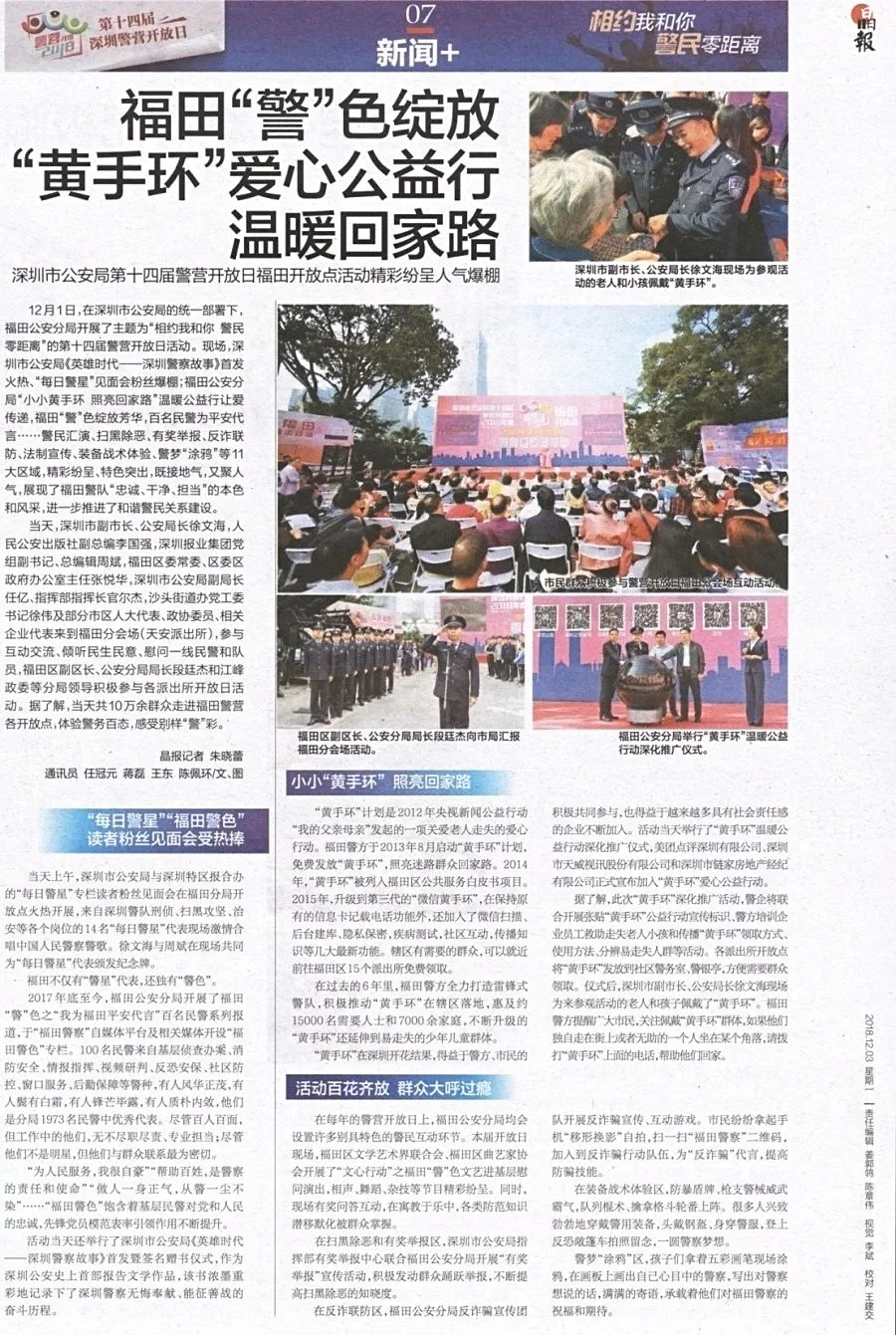 ★★12月1日,在深圳市公安局的統(tǒng)一部署下,福田公安分局開展了主題為“相約我和你警民零距離”的第十四屆警營開放日活動。現場,深圳市公安局《英雄時代——深圳警察故事》首發(fā)火熱、“每日警星”見面會粉絲爆棚;福田公安分局“小小黃手環(huán)照亮回家路”溫暖公益行讓愛傳遞,福田“警”色綻放芳華、百名民警為平安代言……警民匯演、掃黑除惡、有獎舉報、反詐聯防、法制宣傳、裝備戰(zhàn)術體驗、警夢涂鴉等11大區(qū)域,精彩紛呈、特色突出,進一步推進了和諧警民關系建設。