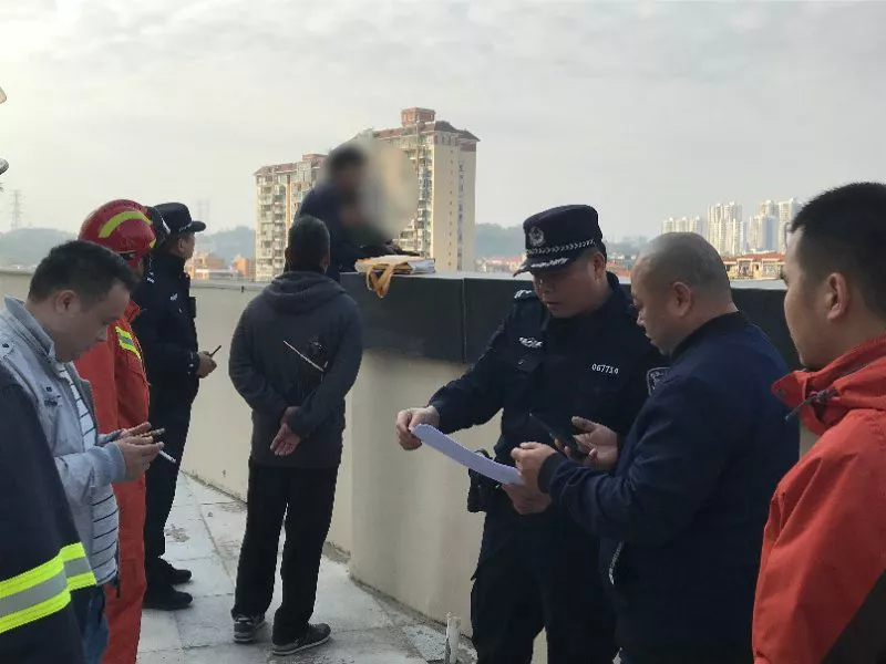 隨后,公安、消防等多部門很快趕到現(xiàn)場(chǎng)。大家兵分幾路,一路是消防救援人員,立即在一樓鋪設(shè)了救援氣墊,另一路是民警,對(duì)男子進(jìn)行現(xiàn)場(chǎng)勸說。