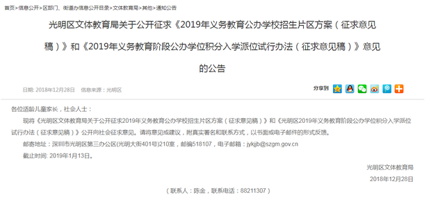 深圳新聞網(wǎng)2019年1月9日訊(記者 劉婷)近日,光明區(qū)文體教育局發(fā)布《光明區(qū)2019年義務(wù)教育階段公辦學(xué)位積分入學(xué)派位試行辦法(征求意見稿)》(以下簡(jiǎn)稱《征求意見稿》)。