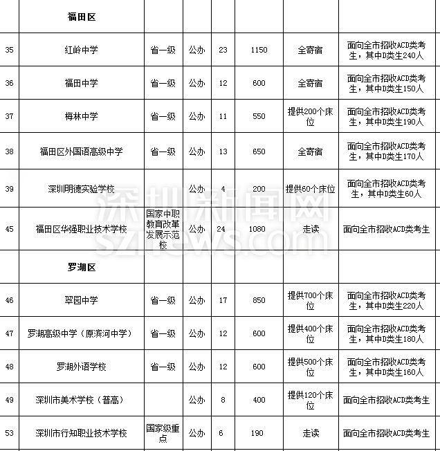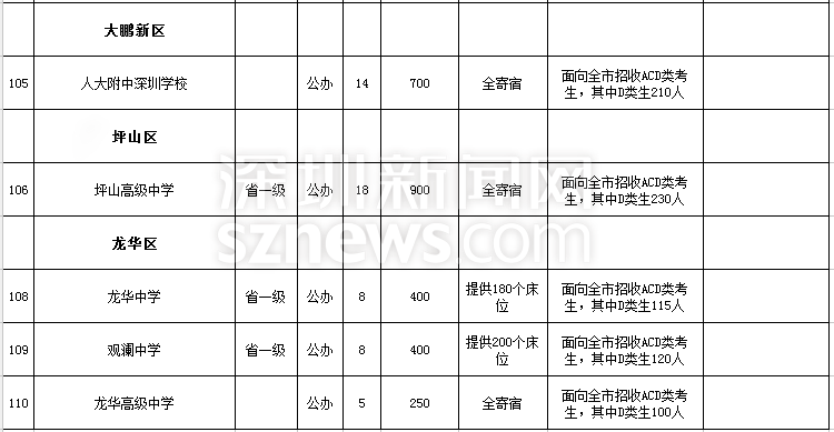 深圳市2018年高中階段學(xué)校招生計(jì)劃表