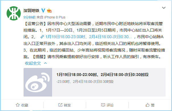 近日,深圳地鐵發(fā)布公告:因市民中心大型活動需要,市民中心附近地鐵站將采取客流管控措施