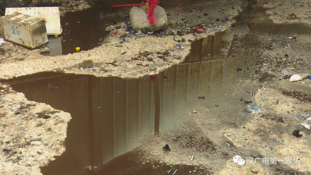 在前期的暗訪中記者發(fā)現(xiàn),3名工人拿著類似砍刀的工具,用簡(jiǎn)單粗爆方法,對(duì)電池進(jìn)行拆解,帶有強(qiáng)腐蝕性的電池廢液,無任何處理,滿地橫流。