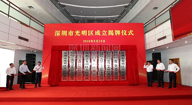 2018年9月19日,光明區(qū)正式揭牌成立。這是繼2016年10月,國務(wù)院批復(fù)同意設(shè)立龍華、坪山區(qū)之后,深圳又一個(gè)獲批的行政區(qū),也是深圳第九個(gè)行政區(qū)。