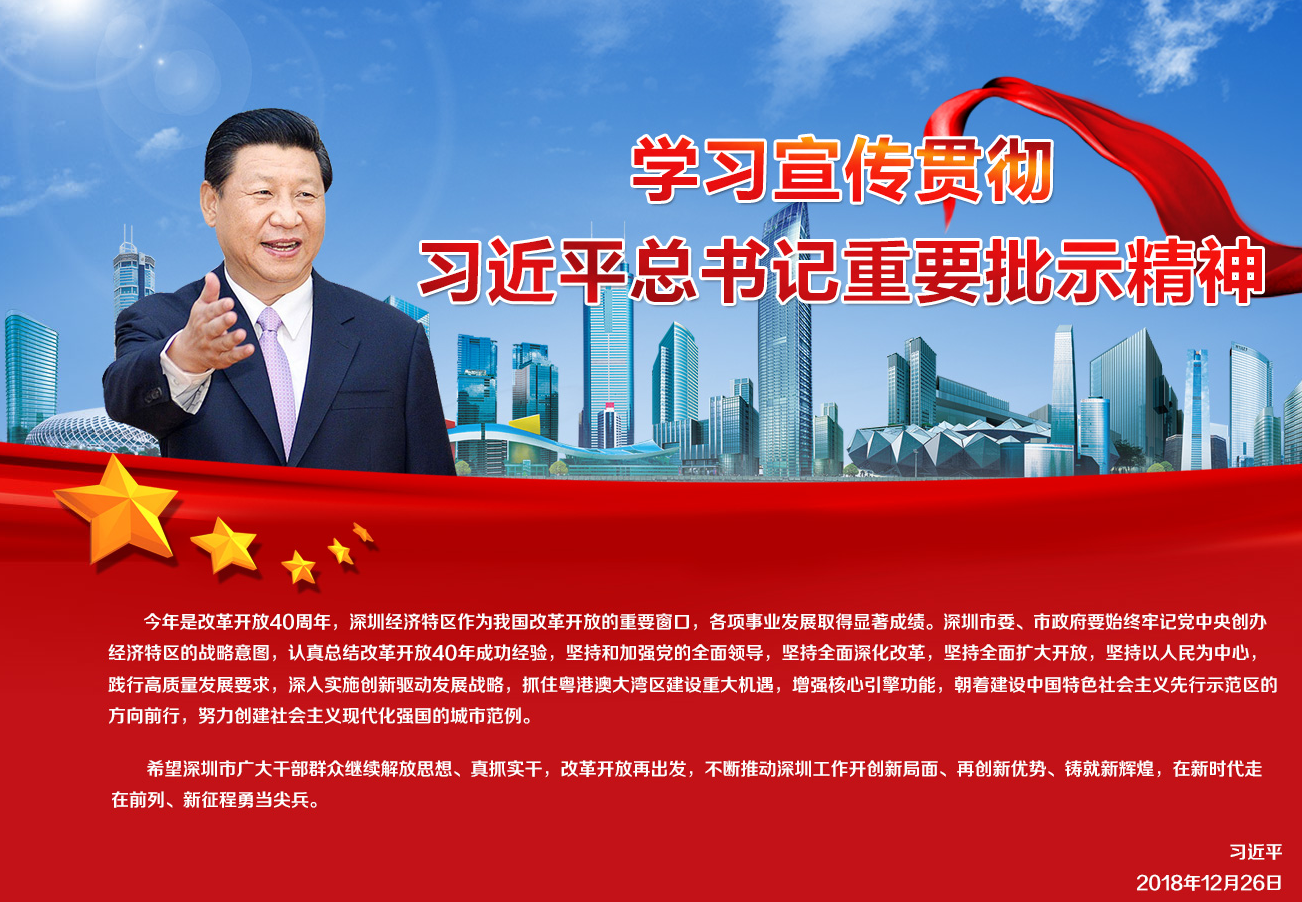 2018年12月26日,習(xí)近平總書記對(duì)深圳工作作出重要批示。全文如下: