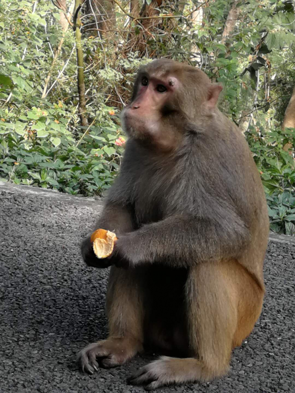 梅林山公園驚現(xiàn)一只胖猴子 愛吃蘋果香蕉和糖果