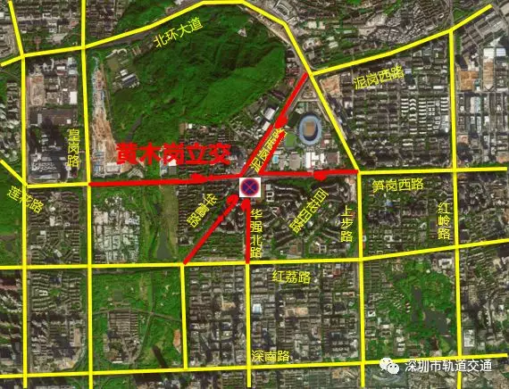 (2)原經(jīng)華富路北行在黃木崗立交左轉(zhuǎn)到達的交通調(diào)整為:紅荔路-皇崗路-筍崗西路-梅崗路。
