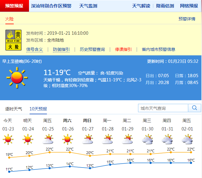 深圳今日有輕微灰霾早晚氣溫較低 火險(xiǎn)預(yù)警生效中……