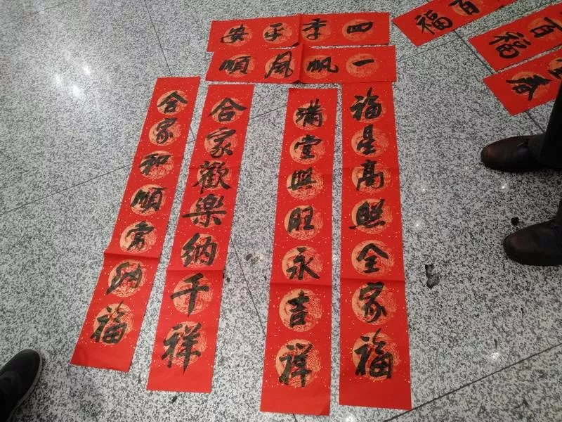 現(xiàn)場寫春聯(lián)的活動(dòng)時(shí)很心動(dòng),