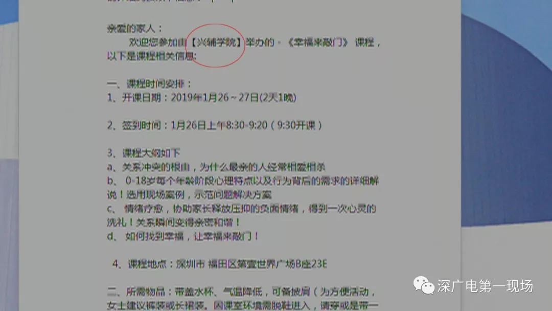 深廣電第一現(xiàn)場2019年2月1日訊 寒假前夕,龍華區(qū)不少家長向我們欄目反映,從上學(xué)期開始他們通過學(xué)校老師的介紹,接觸到了一個教育機(jī)構(gòu)。這個校外的培訓(xùn)機(jī)構(gòu),主要給家長傳授親子教育和家庭相處的技巧,按說這應(yīng)該是一件好事,可是一些家長卻發(fā)現(xiàn),參加了一些課程之后,不光家庭關(guān)系沒有變好,反而帶來了不少家庭矛盾?