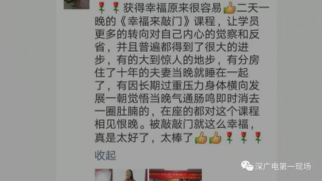 李先生說,價格雖然有點(diǎn)兒高,但如果能夠讓妻子變好,那也無話可說,然而妻子參加完后面課程回來以后,像是被洗腦了一樣。他偷偷看妻子的微信群,都在談?wù)撜n程有神奇的效果,有人在朋友圈推銷說:聽了課程之后,分房住了十年的夫妻當(dāng)晚就睡在一起。