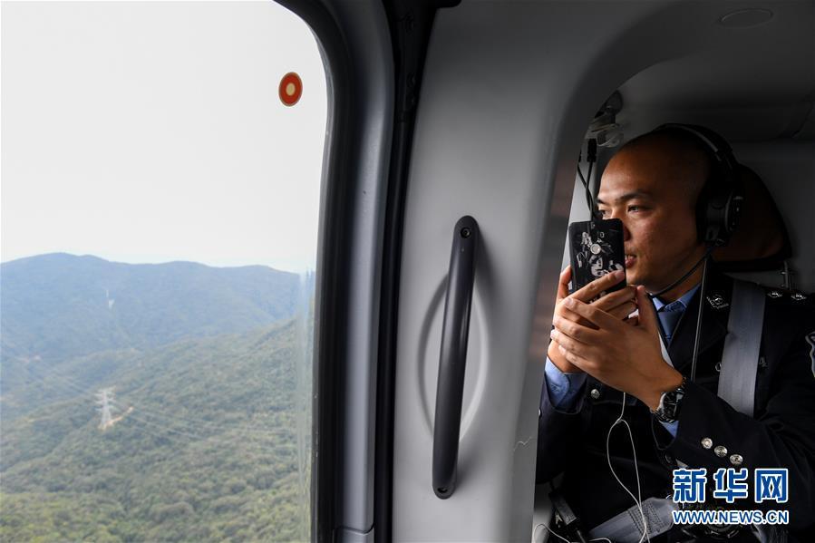 2月1日,深圳市公安局交通警察局指揮處民警劉松超在直升機(jī)上了解路面情況。2019年春運(yùn),深圳市公安局交通警察局開啟陸空立體探路模式,首次啟用直升機(jī)探路。據(jù)介紹,此次直升機(jī)探路將開展5次,屆時(shí)交警選取代表性線路從空中探察路面情況,及時(shí)為司機(jī)提供立體交通通行指引。新華社記者 毛思倩 攝