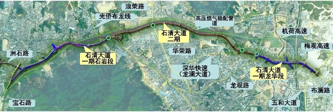 位于龍華區(qū)中部,呈東西走向,起點(diǎn)接寶安區(qū)石巖街道光僑布龍連接線路口,終點(diǎn)接龍華區(qū)龍觀路路口,道路全長約7.658公里,其中龍華區(qū)范圍內(nèi)長7.352公里,寶安區(qū)范圍內(nèi)長0.306公里。