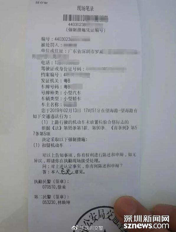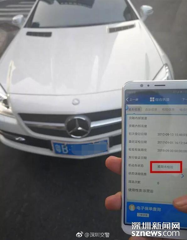 經(jīng)調(diào)查,涉事車輛逾期未檢驗(圖片來自深圳交警微博)