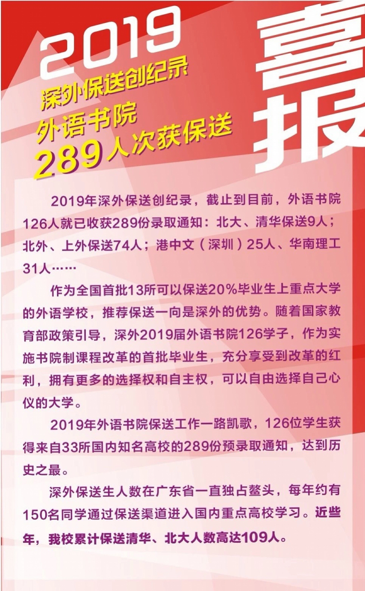 原標(biāo)題:深外今年保送人數(shù)創(chuàng)紀(jì)錄!北大清華保送9人,126人拿預(yù)錄通知