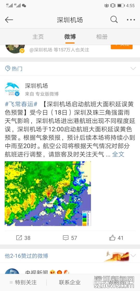 值得注意的是,根據(jù)最新的氣象信息,今天夜間至明天(19日)早間,仍將有中陣雨。深圳機場提醒請明早乘機的旅客留意天氣及航班動態(tài)。