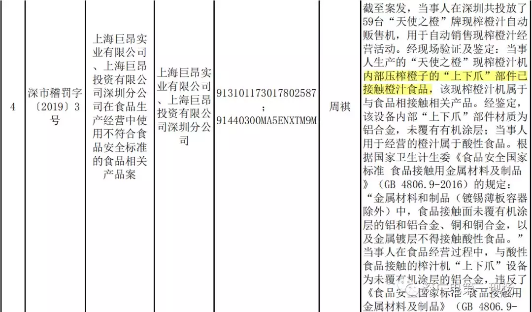 (深圳市市場稽查局公開的相關(guān)處罰信息截圖)