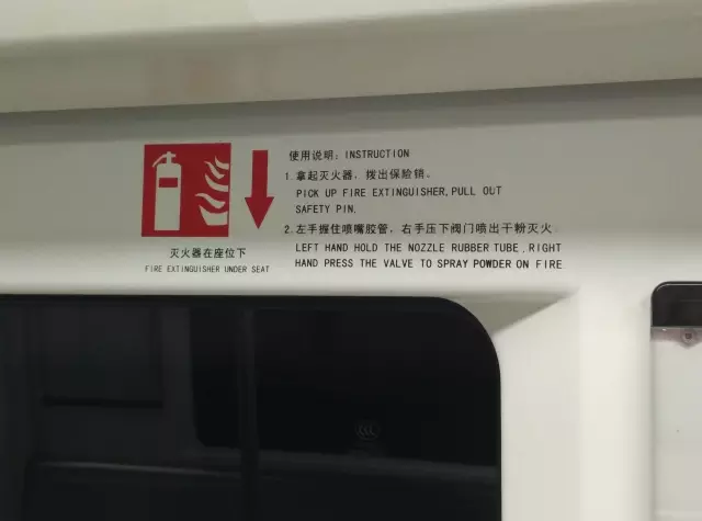 地鐵列車的滅火器布置于客室座椅下方,在其對(duì)應(yīng)的上方設(shè)有相應(yīng)的標(biāo)志。滅火器每個(gè)客室有2個(gè),其中在列車出現(xiàn)火情的情況下,乘客可自行取出滅火器,按要求對(duì)準(zhǔn)起火點(diǎn)進(jìn)行滅火。