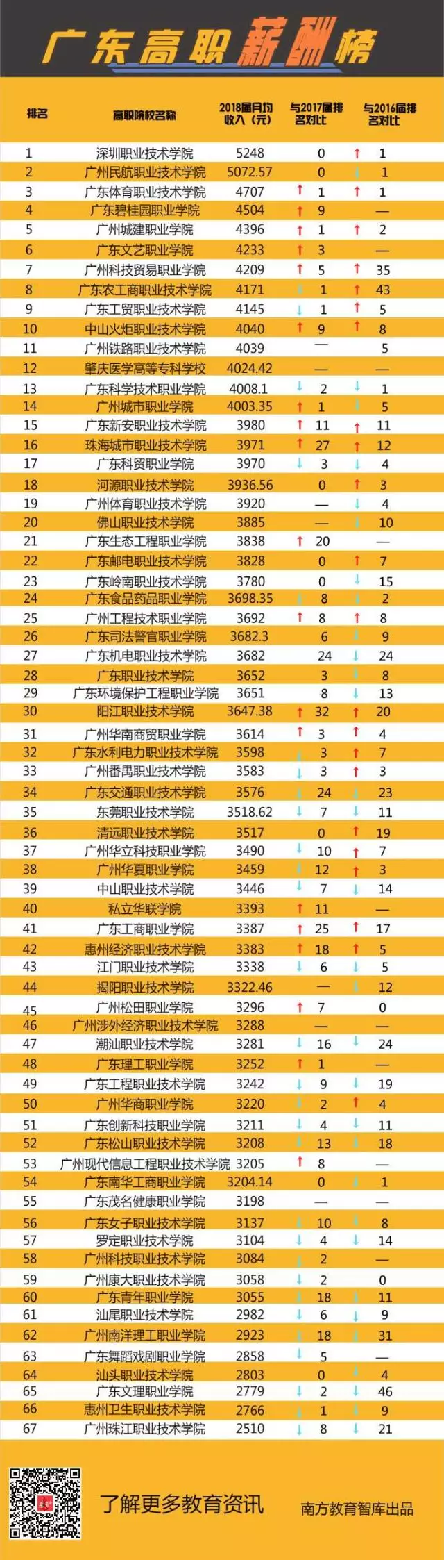 不久前,國務院發(fā)布《國家職業(yè)教育改革實施方案》,廣東有良好的產業(yè)基礎,也是職業(yè)教育大省,畢業(yè)生就業(yè)情況如何?全省67所高職院校公布了2018年畢業(yè)生的平均月薪,其中42所超過全省???362元的平均值。