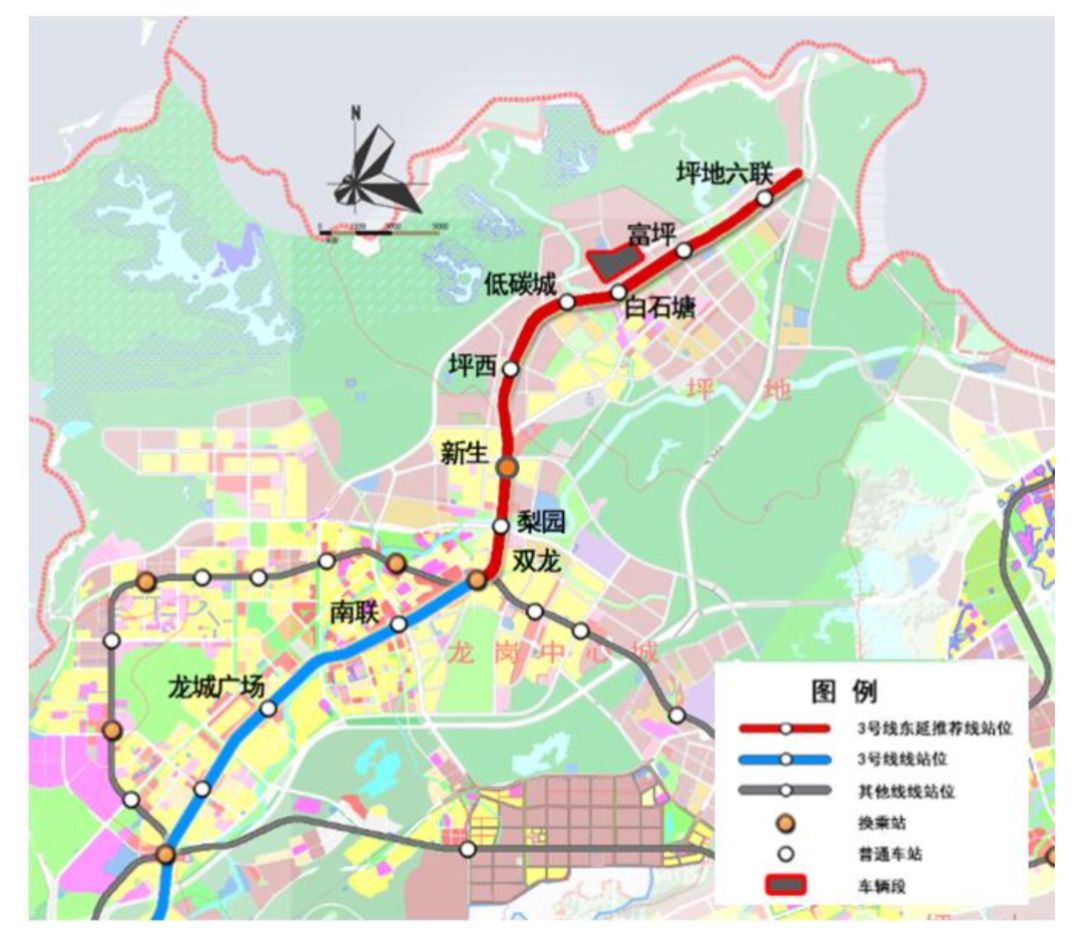 3號(hào)線東延線連接后福、新生、低山、坪西、坪地、坪東以及龍崗中心等地區(qū),并通過已建成運(yùn)行的3號(hào)線連接至福田中心區(qū),是聯(lián)系坪地中心與龍崗中心、橫崗中心、布吉中心、羅湖中心以及福田中心的城市軌道干線。線路全長約9.4km,其中地上線約2.0km,地下線約7.4km。