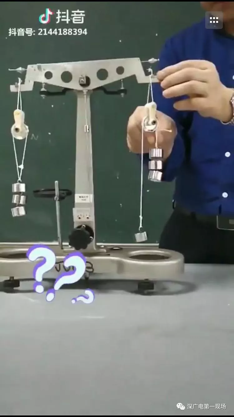視頻中的主角,是深圳市第二實(shí)驗(yàn)學(xué)校的黃正玉、鄭景華、馮雅琪三名物理老師,這個(gè)視頻是一段物理教學(xué)實(shí)驗(yàn)短視頻,名為《3+1=3?》。