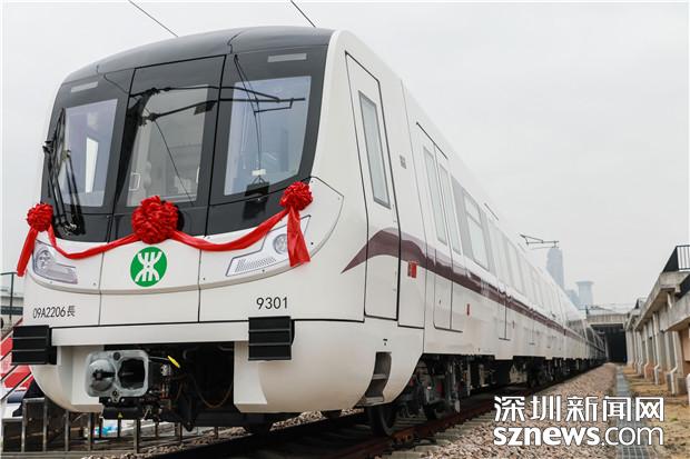 深圳地鐵9號線西延線首輛列車停在僑城東車輛段軌道上