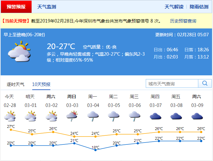 未來三天深圳天氣以多云為主 溫暖潮濕 今日最高溫達(dá)27℃
