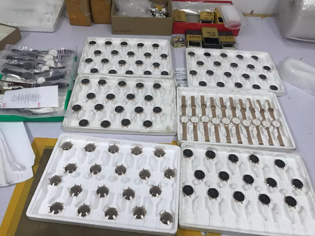 2018年6月21日,深圳市公安局經(jīng)偵支隊(duì)聯(lián)合市市場(chǎng)監(jiān)管部門開展打擊假冒DW品牌手表、FOREO等品牌潔面儀收網(wǎng)行動(dòng),共出動(dòng)警力110人,查處窩點(diǎn)13個(gè),刑拘犯罪嫌疑人12人?,F(xiàn)場(chǎng)查扣假冒DW品牌手表13500塊,表帶、表殼、后蓋等配件43000個(gè)以及包裝盒、標(biāo)簽12000余個(gè),現(xiàn)場(chǎng)查扣假冒產(chǎn)品價(jià)值1200萬(wàn)元人民幣,總涉案金額3000余萬(wàn)元人民幣。查扣假冒各品牌美容產(chǎn)品、半成品和商標(biāo)標(biāo)識(shí)11798件,查扣假冒產(chǎn)品價(jià)值人民幣500萬(wàn)元。經(jīng)查,上述犯罪團(tuán)伙在未經(jīng)注冊(cè)商標(biāo)所有人許可的情況下,擅自使用注冊(cè)的商標(biāo)圖案組裝、翻新假冒DW品牌手表、FOREO品牌潔面儀。經(jīng)商標(biāo)權(quán)利人鑒定,現(xiàn)場(chǎng)查獲的手表和美容儀為假冒其注冊(cè)商標(biāo)的產(chǎn)品。